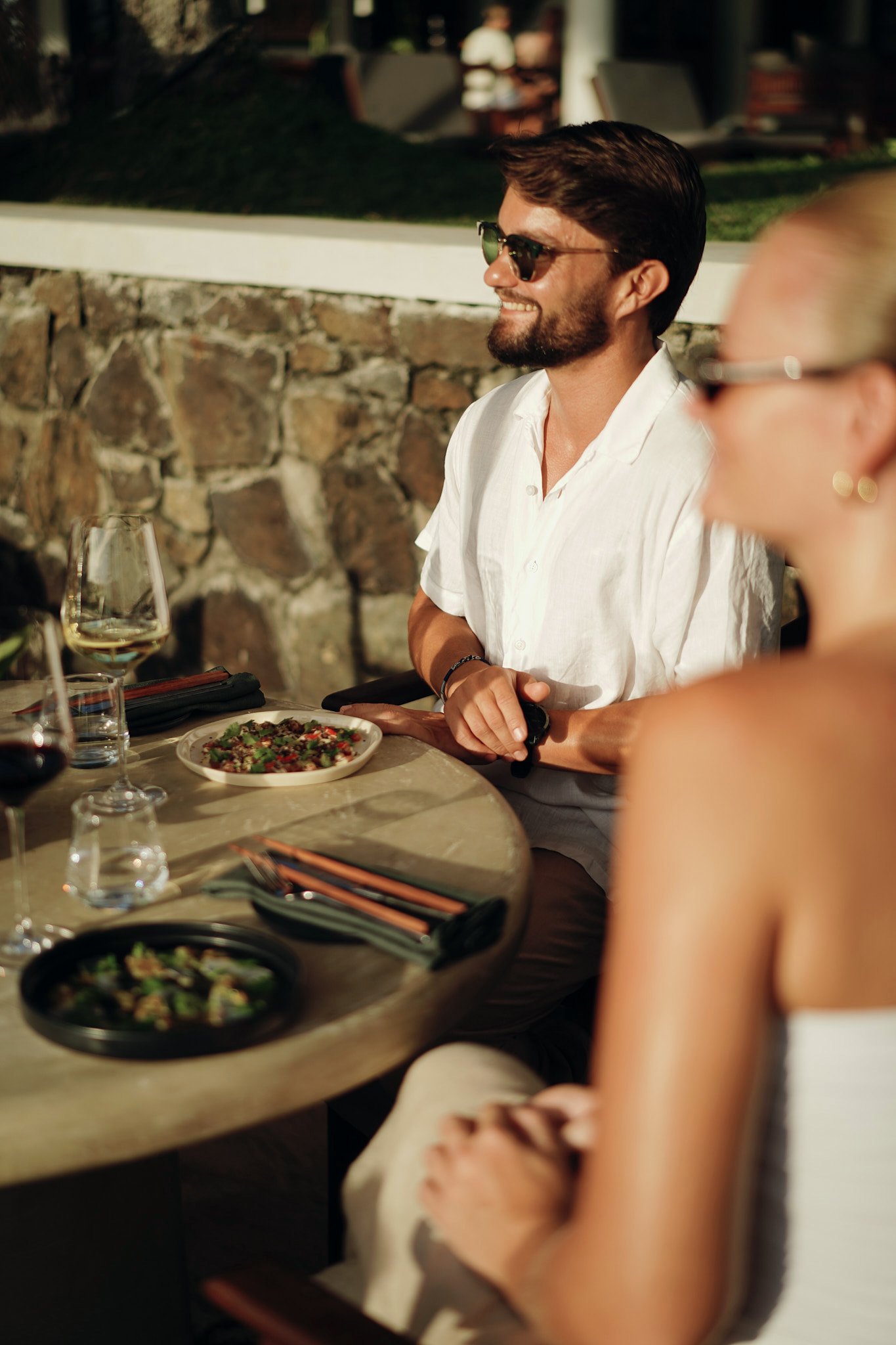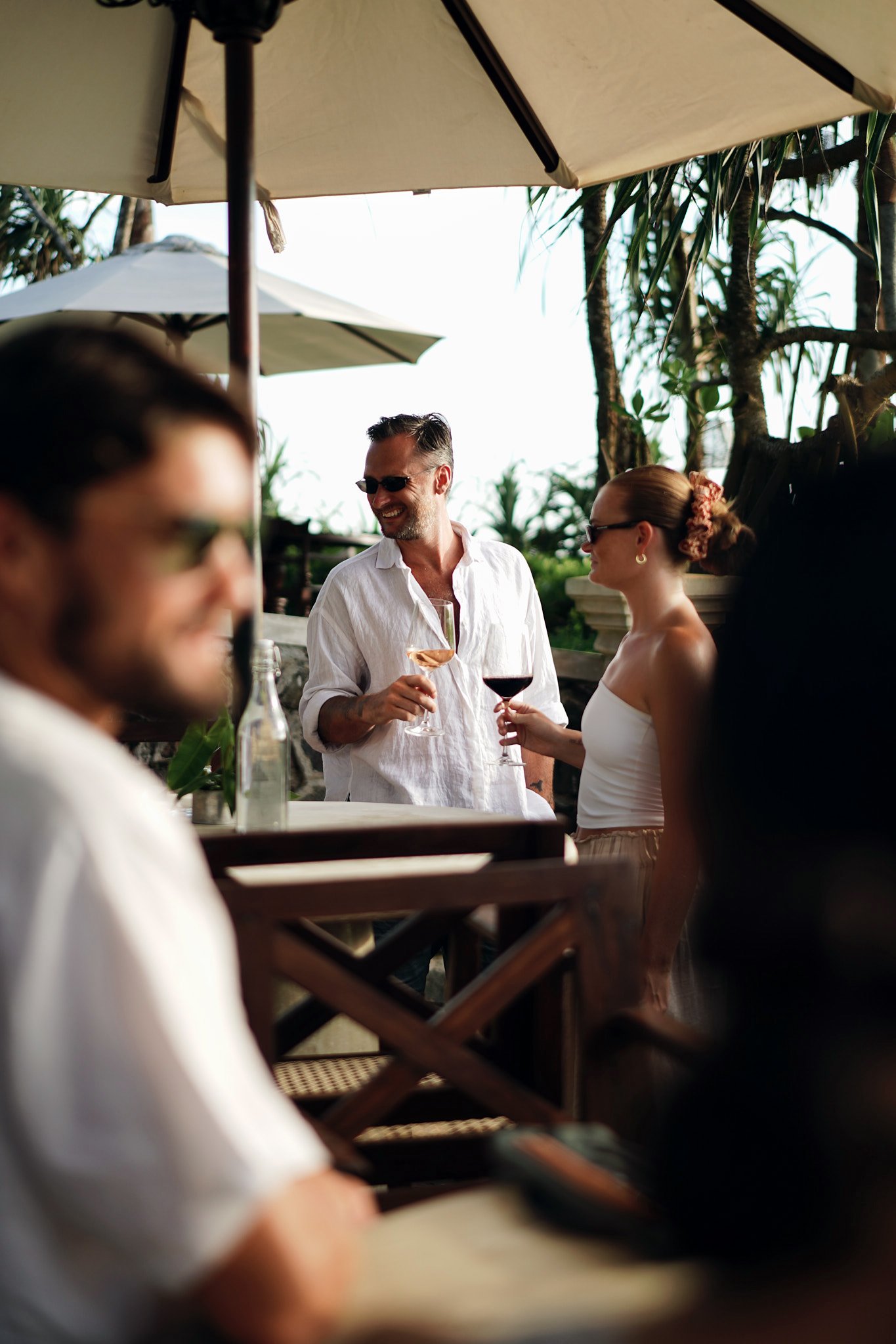 The atmosphere is relaxed and personal. Guests may enjoy wine and food inside the bistro or carry their glass out to the beachfront, where bean bags, open views, and ocean breezes create a quiet, private sunset experience.